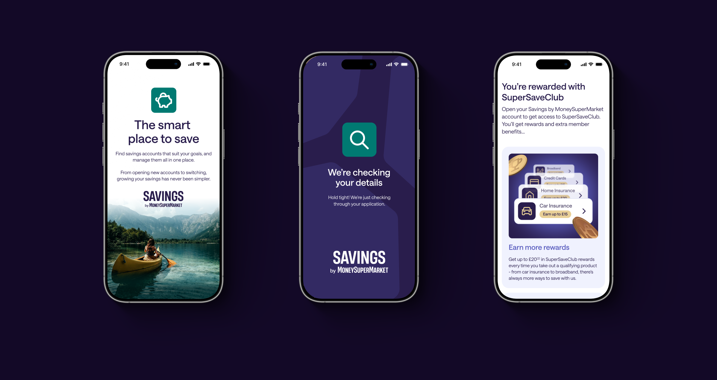 Defined the creative direction for the launch of the MoneySuperMarket Savings platform, developing a distinct sub-brand that felt connected to MSM while giving it its own clear identity. Established the visual approach, tone, and design foundations to support the launch and ensure consistency across digital channels. The work helped position Savings as an extension of the main brand while helping it stand out in a competitive market.